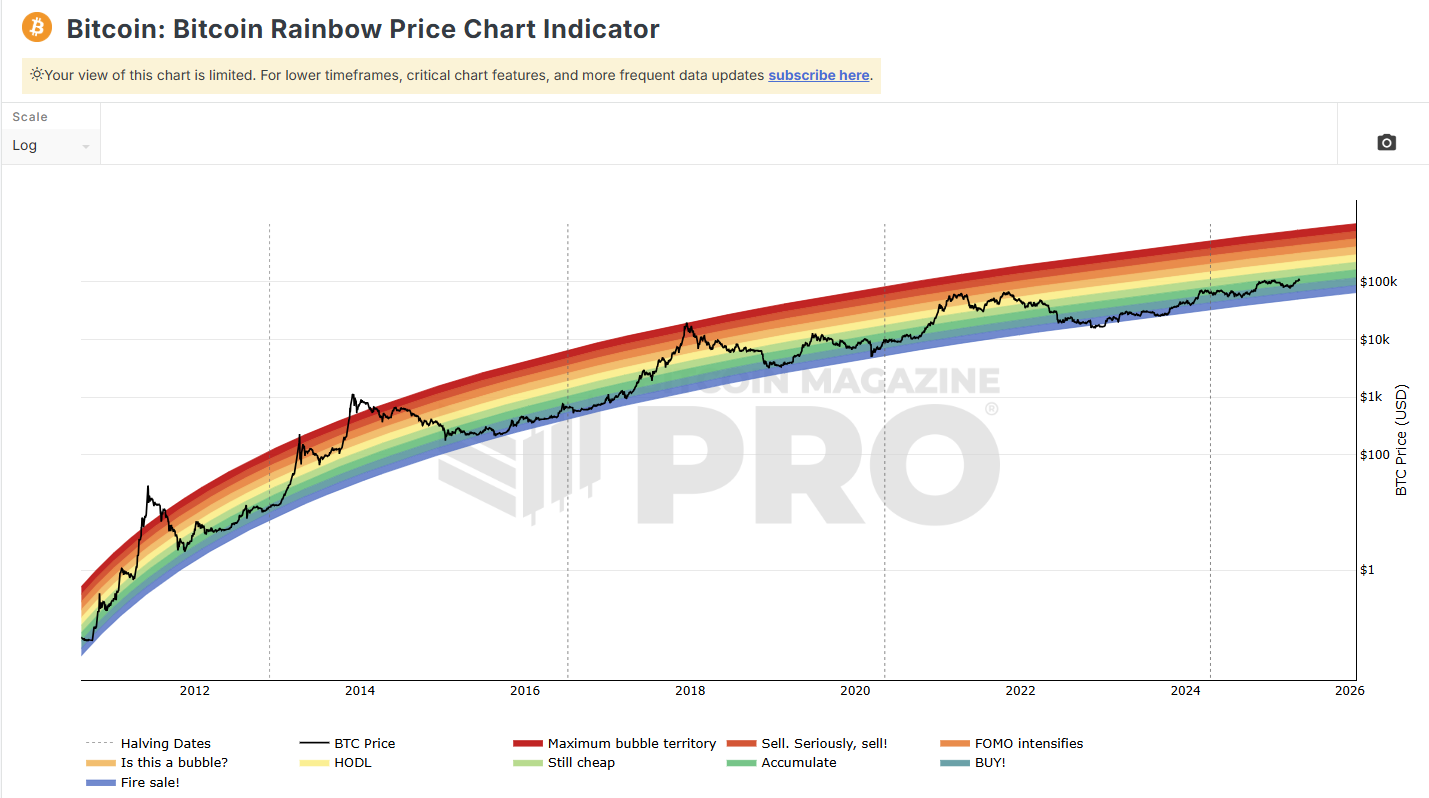 Bitcoin Rainbow Price Chart Showing We Have Room To Run In This Bull Cycle.