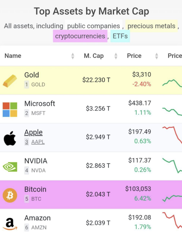 Bitcoin Becomes #5