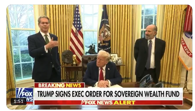Trump signed executive order for a sovereign wealth fund this afternoon, the fund will be run by two pro-crypto people fueling the speculation that some crypto coins will be added to the fund. Senator Lummis says this US Sovereign fund is a "Big Deal", she has been extremely outspoken about the US buying BTC.