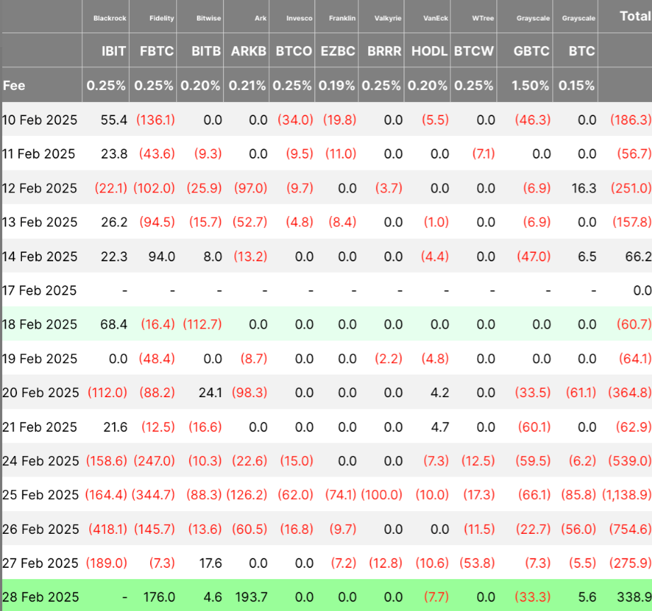 Over the last few days the entire crypto market has been under some extreme sell pressure. The EFTs have been on a 8 day streak of outflows and on 2/25 the Bitcoin ETFs saw the biggest outflow 1,138 million. All the tariff news have been a major factor in the broad selling and pressure on crypto and the markets. Bitcoin touched $78,200 before finding some support and bouncing back above $80,000 a few hours later. Technical charts show major support levels around the $78,000 range, however if that level gets broken Bitcoin could fall to the $73,000 range.