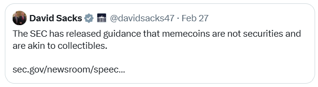 The agency’s Division of Corporation Finance stated, memecoins “do not involve the offer and sale of securities under the federal securities laws” and “are akin to collectibles.”