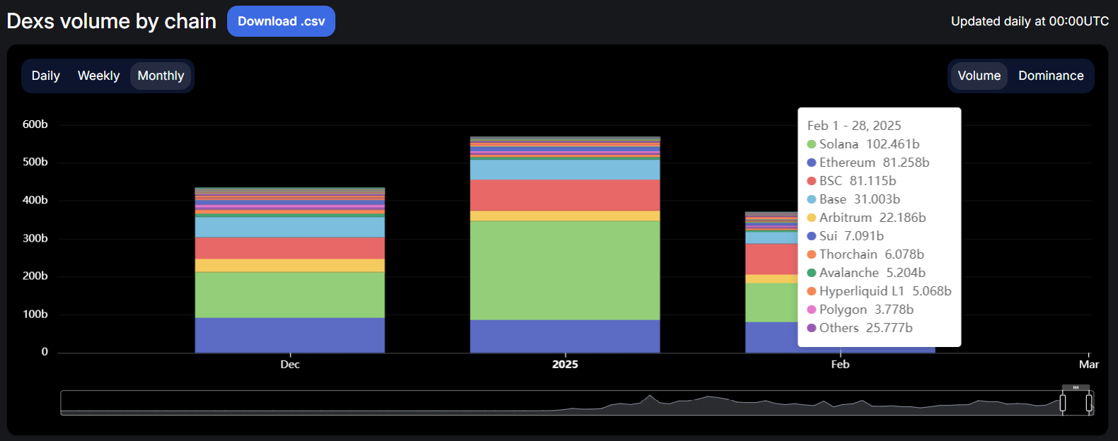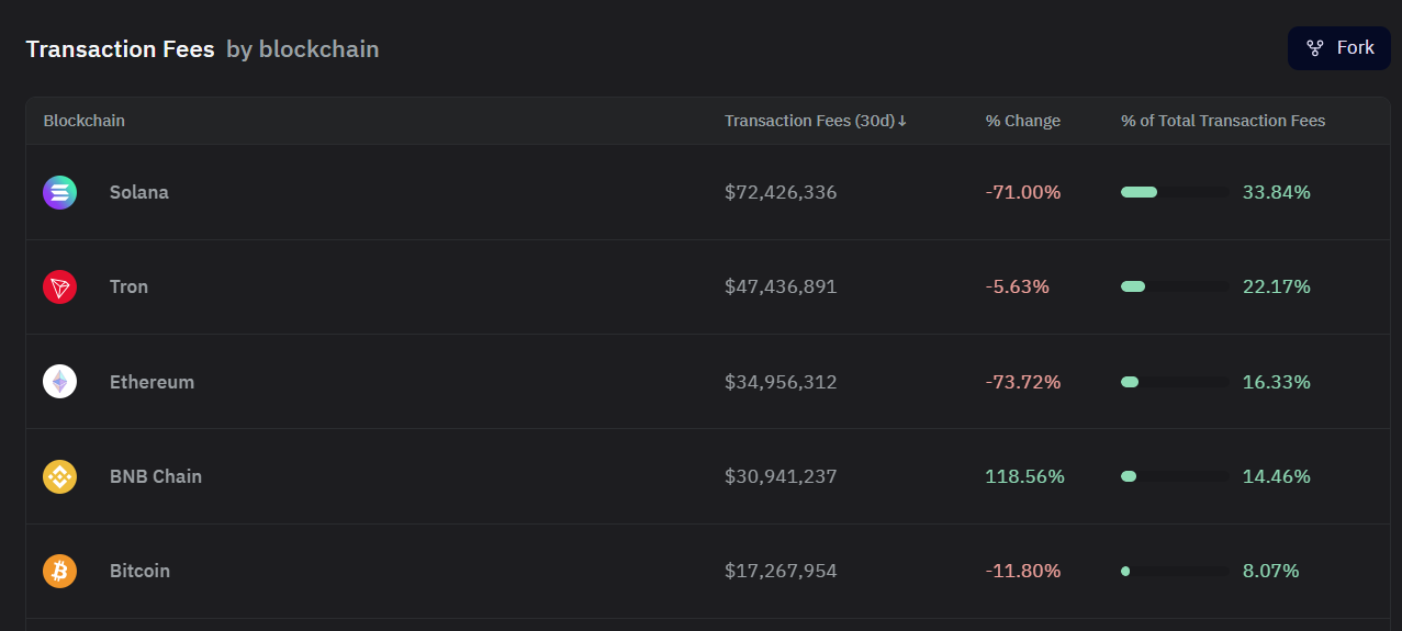 As has been the case Solana continues to have the most volume in all of crypto due to their extremely low fees and fast transaction speeds. Looking at the chart below from DefiLlama, SOL has almost 30% more volume that ETH and made more than double the amount of money on fees that ETH in the last 30 days, $72M vs $35M. Soloana continues to outperform all other crypto chains and remains poised for a large breakout very soon.
