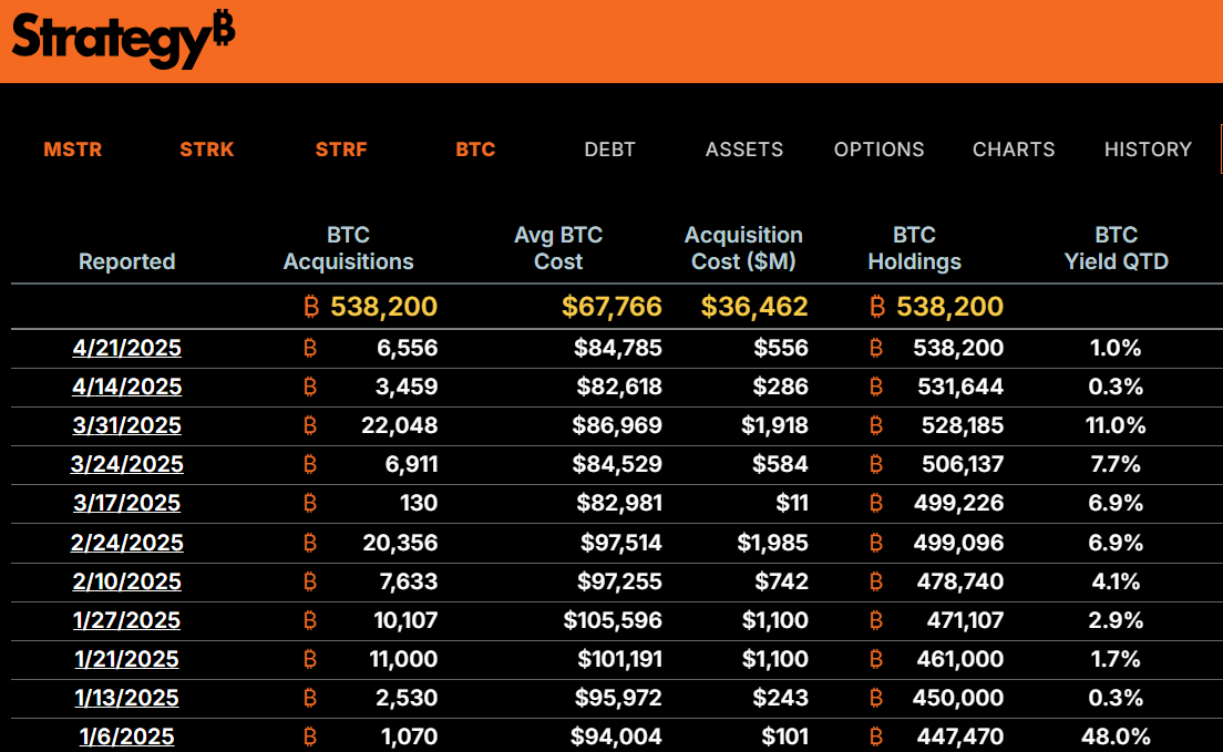 Strategy bought 6556 more Bitcoin spending more than $555 million. With this purchase Strategy now holds 538,200 bitcoins worth around 47 billion. The average price for this buy was $84,752 per Bitcoin, with the funds coming from the selling of MSTR (common) and STRK (preferred) stock to investors last week. Michael Saylor continues to show no fear about Bitcoin's future and has stated several times that at $85K it's cheap. Earlier reports were that Saylor purchase would be closer to 2 Billion, seems like the market is fully expecting Saylor to continue to buy more even as the price moves up. Saylor stated that he would continue to buy even after the price moves over $100K and proved this in January.